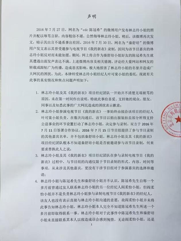 首先,林志玲发申明表示要追剧陈冠希责任。