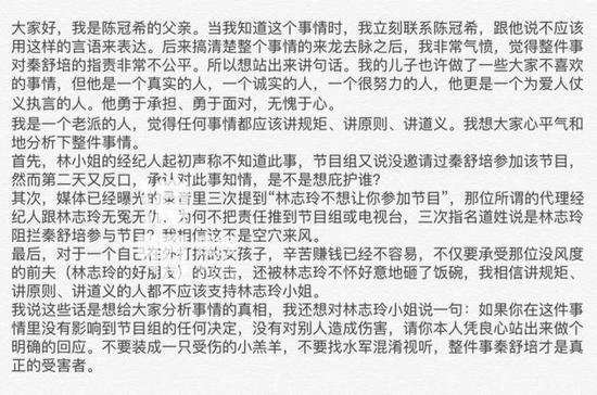 昨日,陈冠希的老爸发文,发声力挺儿子,并且认为儿子骂人肯定有期理由。