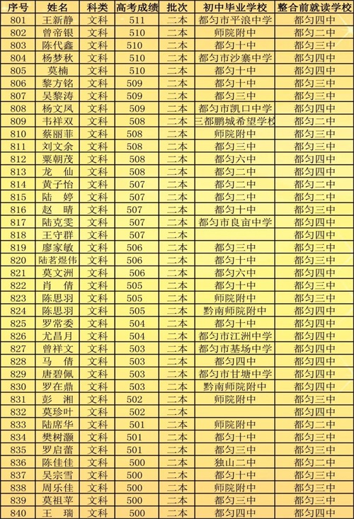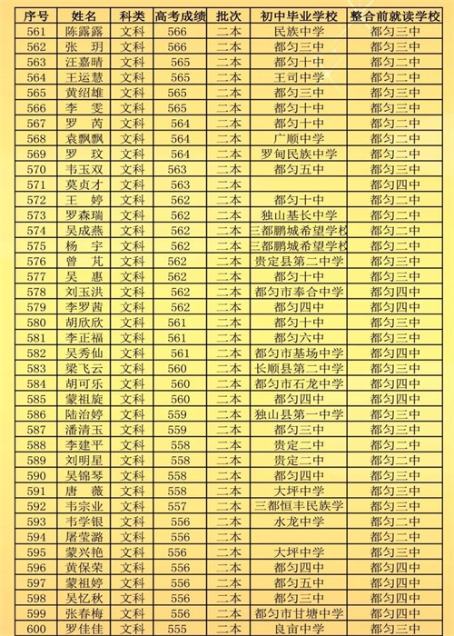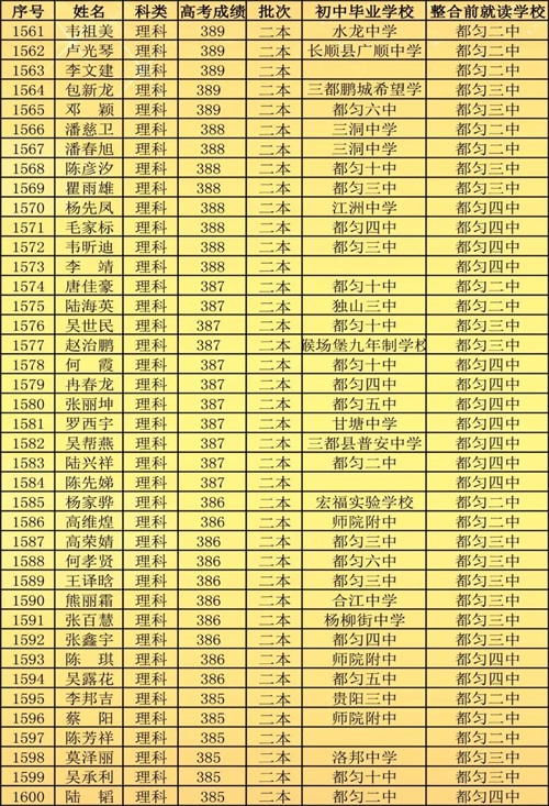 2018年,原都匀二中与都匀三中高中部、都匀四中高中部整合组成新都匀二中。新都匀二中首届高考取得了辉煌的成绩: