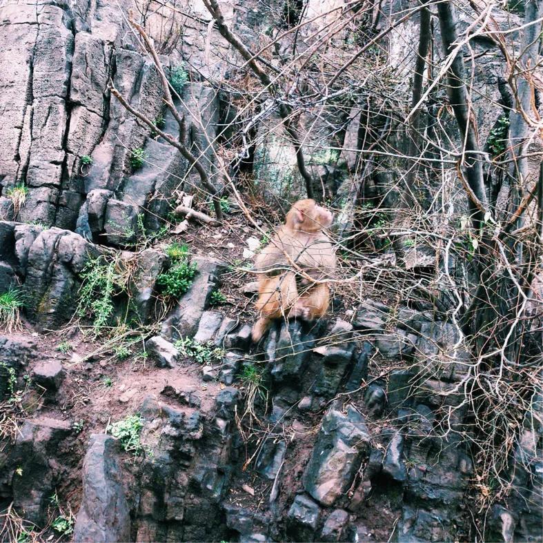 从售票处一路开到景区里,路边偶尔就能看见几只猕猴,下了车路边山上也不时的跑出来几只猴子,十分可爱,却又惹不起。