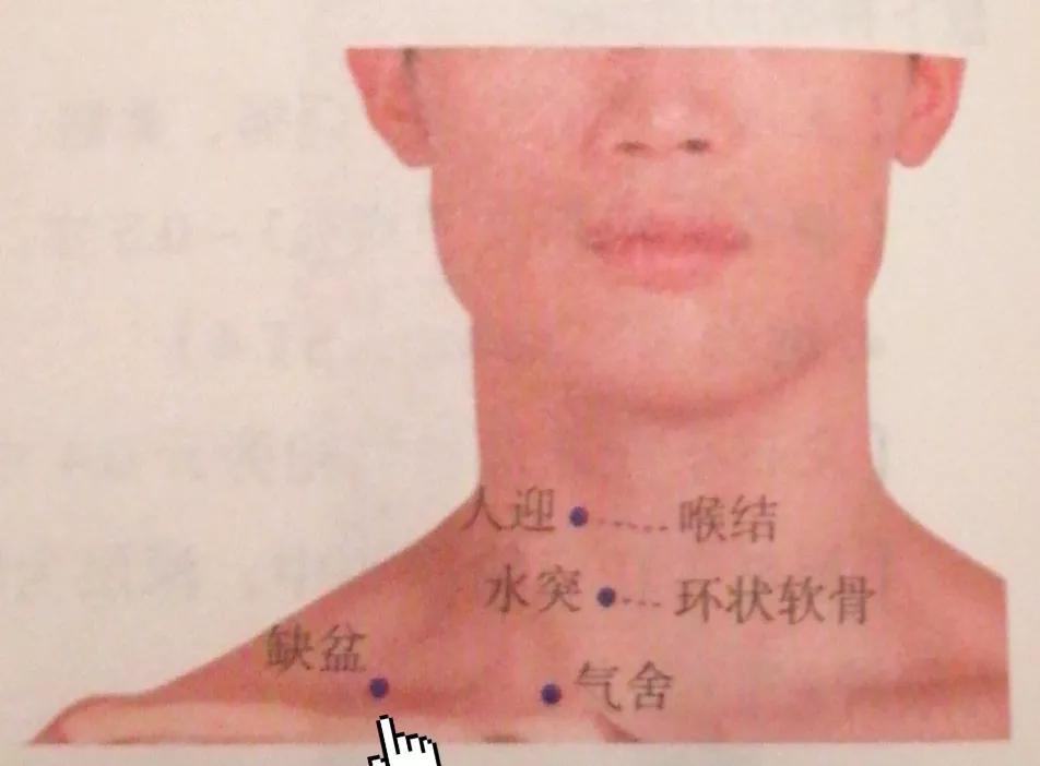 3、配水突、气舍,治咽肿。
