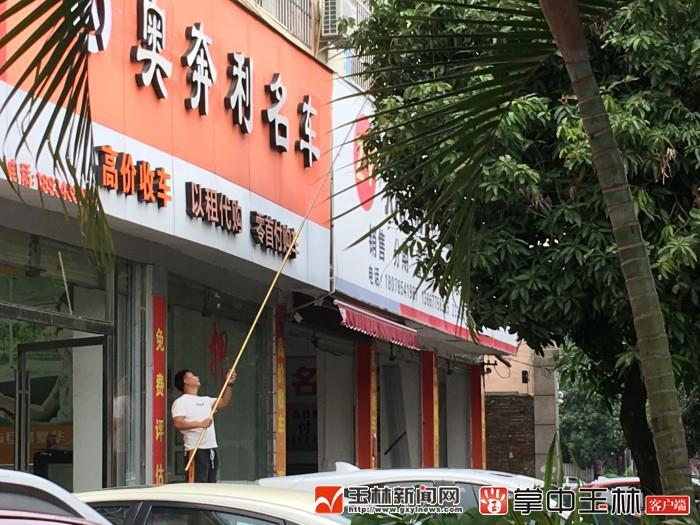 市民用竹竿拍打“绿化芒”。