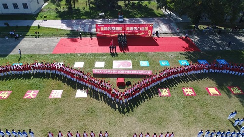 全体教职工站在"心"字造型的底部,国旗背景墙的前面,表达了学校"把学生放在心中最高位置"的理念,也体现了"当好学生铺路石"核心价值观,更展现了新时代人民教师忠诚党的教育事业,热爱党、热爱祖国的高尚情怀和真挚情感。