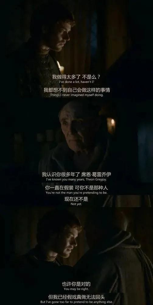 在他经受了亲生父亲和姐姐的质疑后,他下了一个决定,他决定做一个铁群岛的继承人,他决定从属他的第一身份。