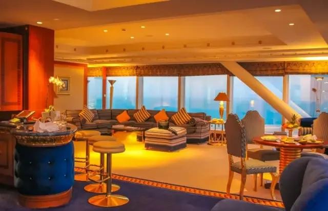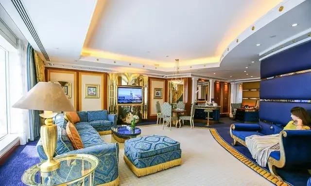 迪拜这两个字给人的第一印象就是土豪,是全球最富有最顶尖的存在,在里面最便宜的套间住一晚上的价格是1.8万美元,折合人名币11.5万毛爷爷。这个费用是很多中小家庭一年可支配的收入了。