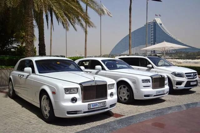 只有一条路通往酒店,你可以享受到劳斯莱斯专属座驾。原本2台劳斯莱斯和8台宝马。现在已经是10台白色幻影了。车牌号77701-77710。还有一些是改款的劳斯莱斯。