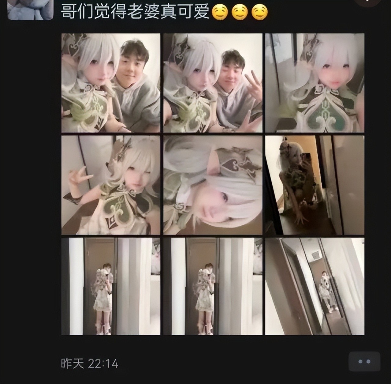 然而 der 发现,网上所流传的所谓的“男朋友配文发言”,永远配的是这张几图,更多的是秃崽和粉丝的合照。