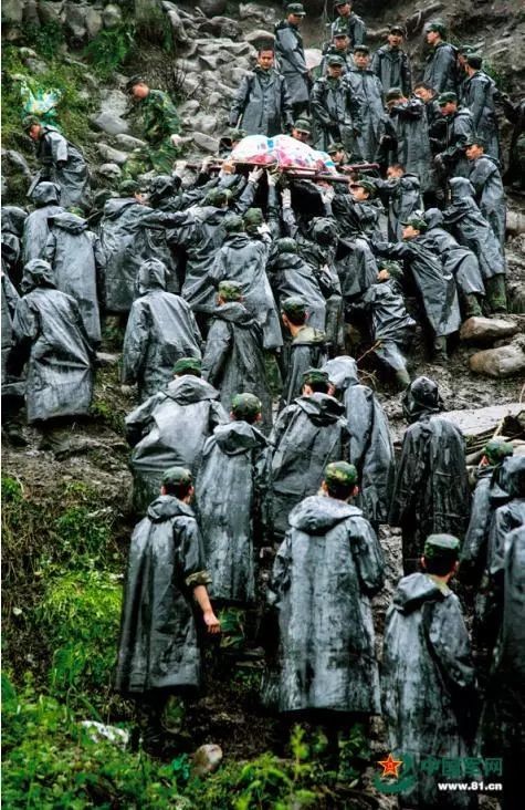 670名官兵徒步进入震后隔绝的汶川,边开路边前进。历经21个小时,徒步强行军90多公里,“逆行”至震中。