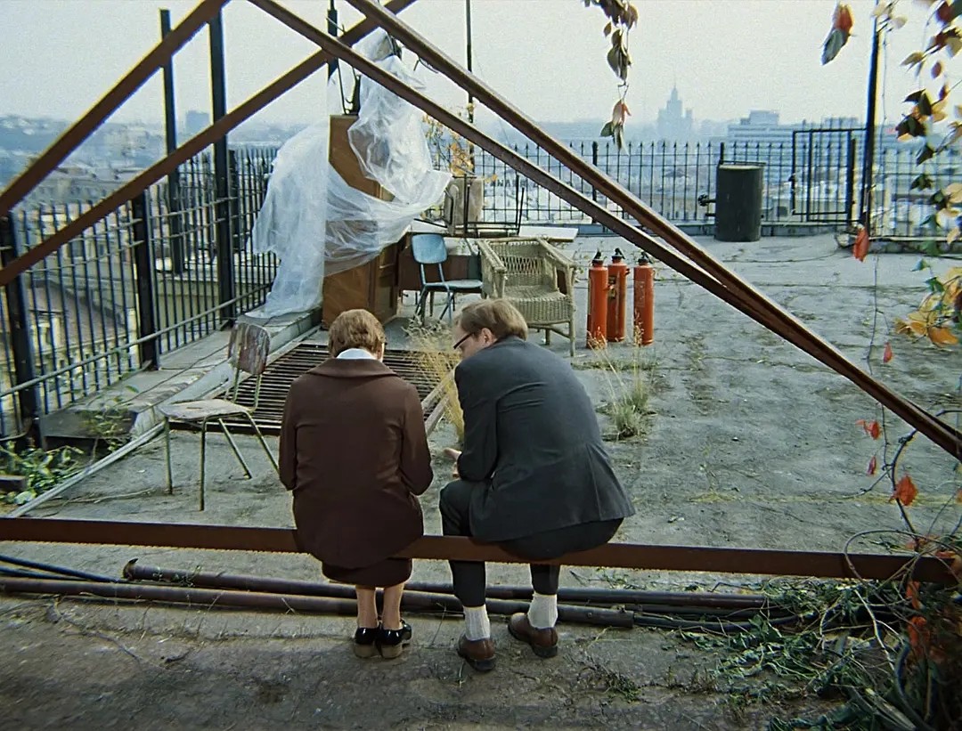 一场情绪的溃决卸掉女局长平时冷硬严峻的面具。在办公室外的天台上,他为她倒水洗脸,柳德米拉红肿着鼻子,同这个她以前根本未曾注意的平庸下级并肩而坐,倾吐出内心积郁已久的孤独与寂寞。