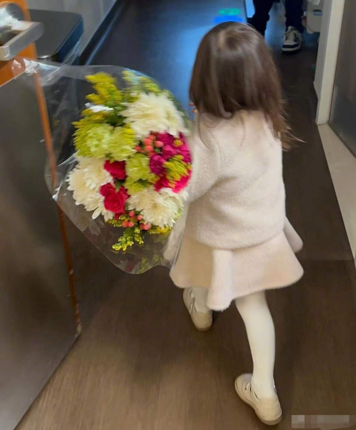 陈法拉口中的“大姐姐”是她2021年2月14日情人节那天生下的“小米妮”,照片里3岁的米妮穿着米色小裙子,抱着一束比她还高的花,风风火火的狂奔而来。