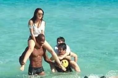 她和小自己8岁的魏大勋一起度假,一起玩水,关系非常亲密,