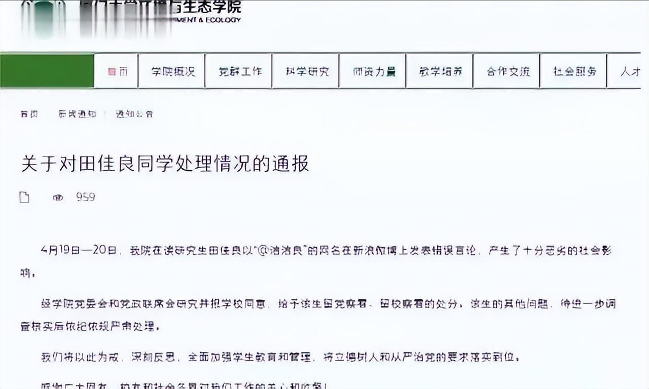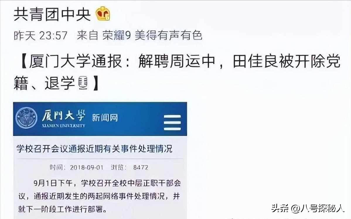 事情被曝光后,厦门大学终于忍无可忍,最终作出了对田佳良勒令退学的处分。