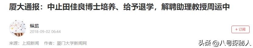 厦门大学新闻网——厦大通报:中止田佳良博士培养、给予退学,解聘助理教授周运中