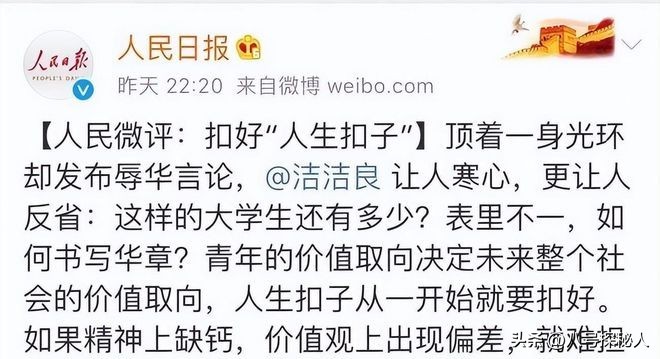 在铺天盖地的评论中,一个名叫“洁洁良”的网友引起了大众的关注。