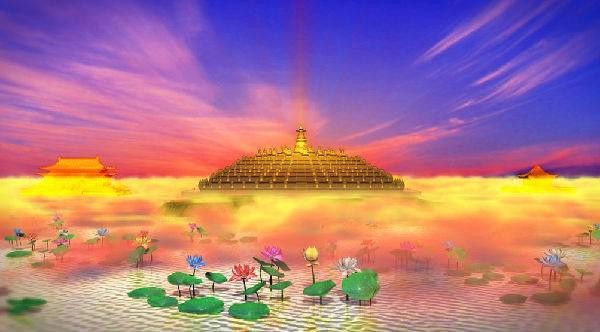 "我的国土中处处弥漫着奇妙的香气,众生闻到后烦恼自然消除。有七宝池,池水清净柔软,具有八功德。池中生长无量色彩的莲花,微风吹动,自然演说妙法。众生听闻,自然生起念佛、念法、念僧之心。"