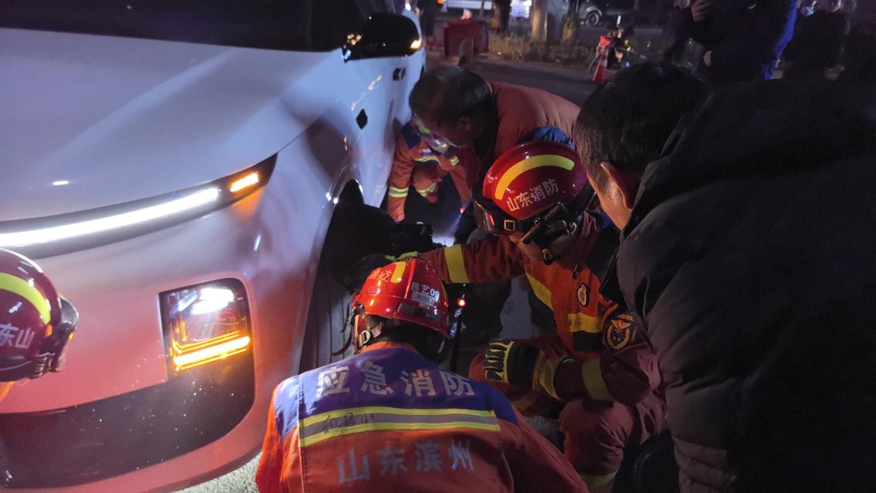 滨州:车祸致一老人被卷车轮处 消防紧急救援