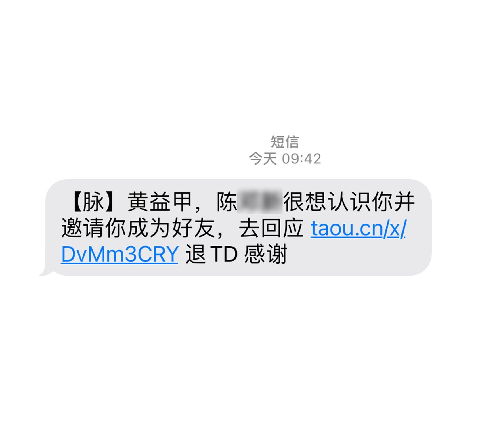 “黄益甲,陈××很想认识你并邀请你成为好友……”