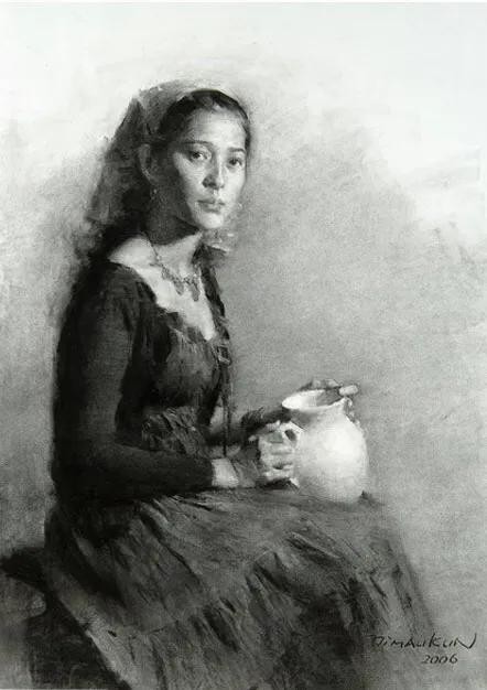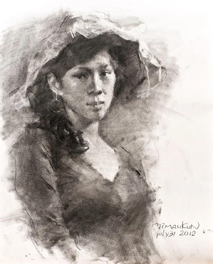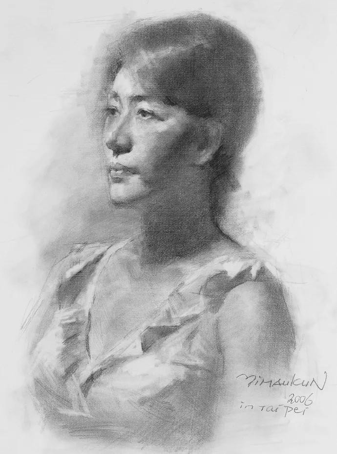 无论肖像或人体,他都是全神贯注地捕捉绘画对象的体面层次与色彩变化,笔触的灵活,色感的微妙,造型的准确,当代画坛,实不多见。