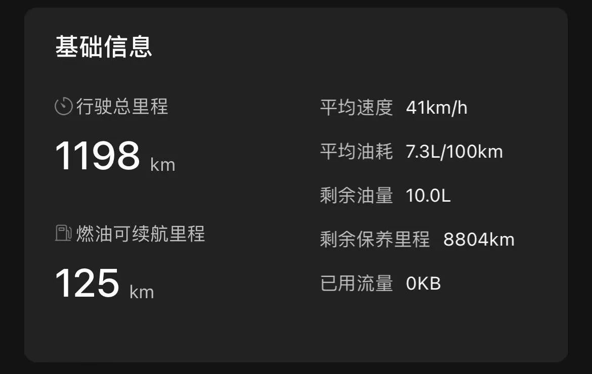 目前一个月开了1200公里左右,跑了两趟高速,其他都是城乡结合路段油耗在7.3,新车属于磨合期,这个油耗我觉得完全能接受。