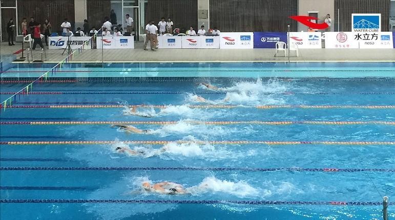 哨声一响,他迅速跳入泳池,如一条飞鱼一般在水中快速游动。