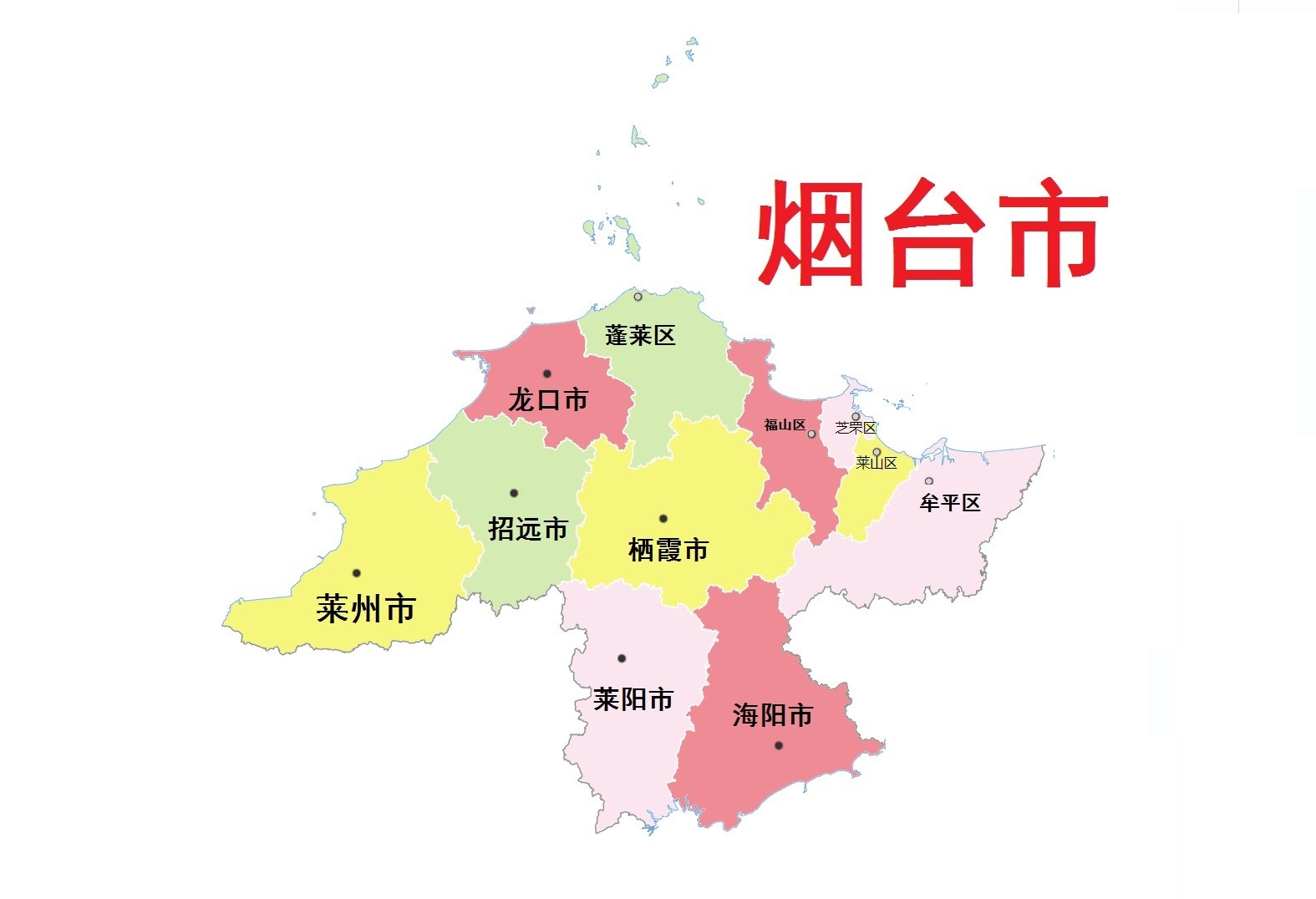 烟台市,市政府驻莱山区。地处山东半岛东北部,北濒渤海与辽宁省大连市隔海相望,东连威海市,南濒黄海,西南与青岛市毗邻,西接潍坊市。