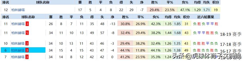 柏林赫塔上半程积19分排名第12位,场均抢到1.12分。冬歇期后球队场均积分升至1.33分,状态开始提升。目前球队积31分排名联赛第11位,高出降级区外8分,保级形势比较乐观。近4个赛季,柏林赫塔都能够在德甲稳居中游,球队甚至还曾在17-18赛季杀入过欧罗巴赛事。而在今年4月初的时候,柏林赫塔官方宣布努里下课,俱乐部夏窗的巨大投入收效甚微,最终新帅拉巴迪亚走马上任。在接过教鞭的首秀中,柏林赫塔客场3-0大胜霍芬海姆迎来开门红,为周末的柏林德比奠定了士气。