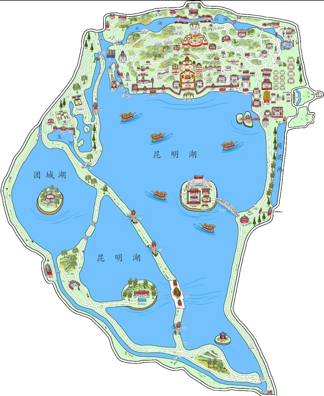 基于昆明湖、万寿山的地理位置,借鉴杭州西湖的设计理念,融合江南园林的手法,打造了这座壮观的山水园林