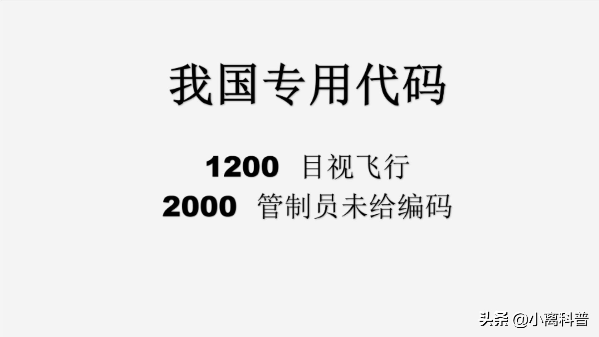 飞机应答机代号是一组4位8进制数字,取值从0000到7777,共4096个。大多数代号是正常使用的,其中一些组合带有特殊含义,7500代表着非法行为,发生劫机或空中暴力;