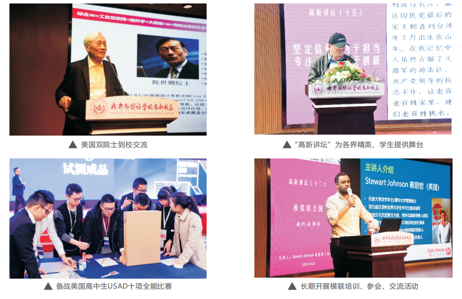 成外高新赓续成都外国语学校优良血统,在“一体化”办学模式之下、在学校师生的共同努力之下,实现与成外同步、同向、同质、同频的发展态势。
