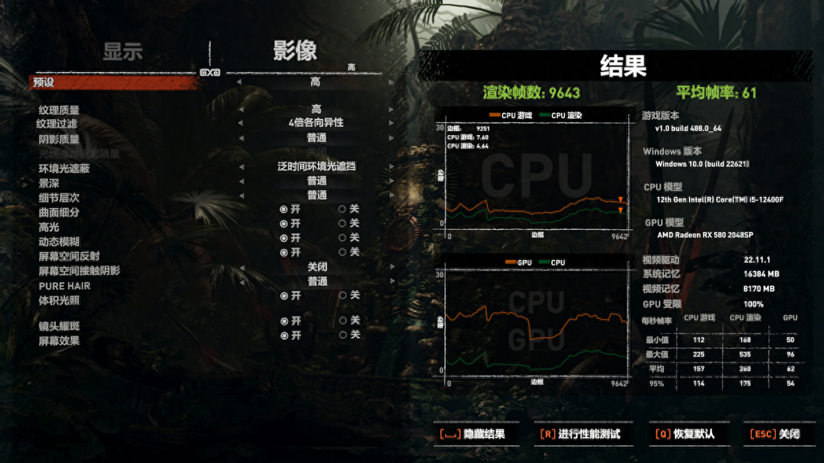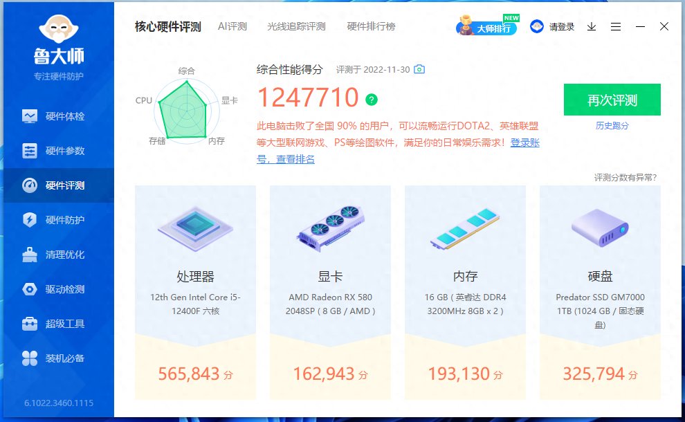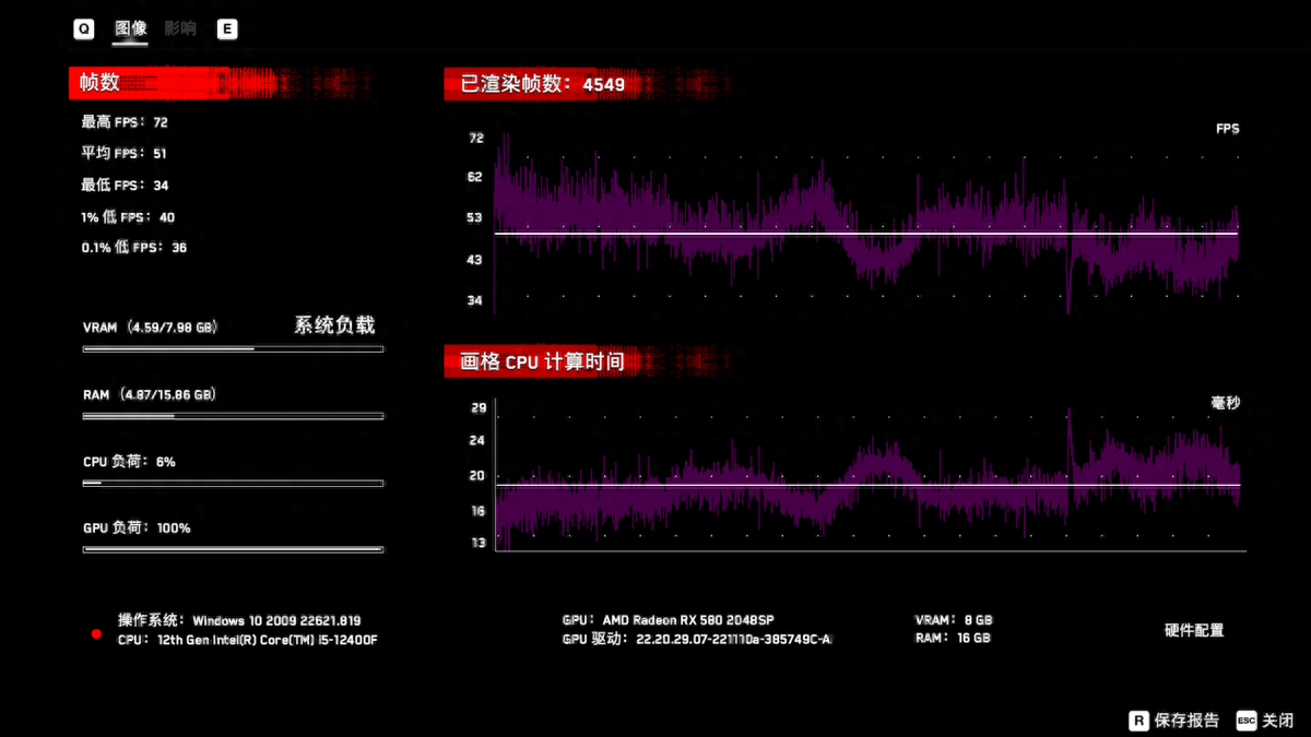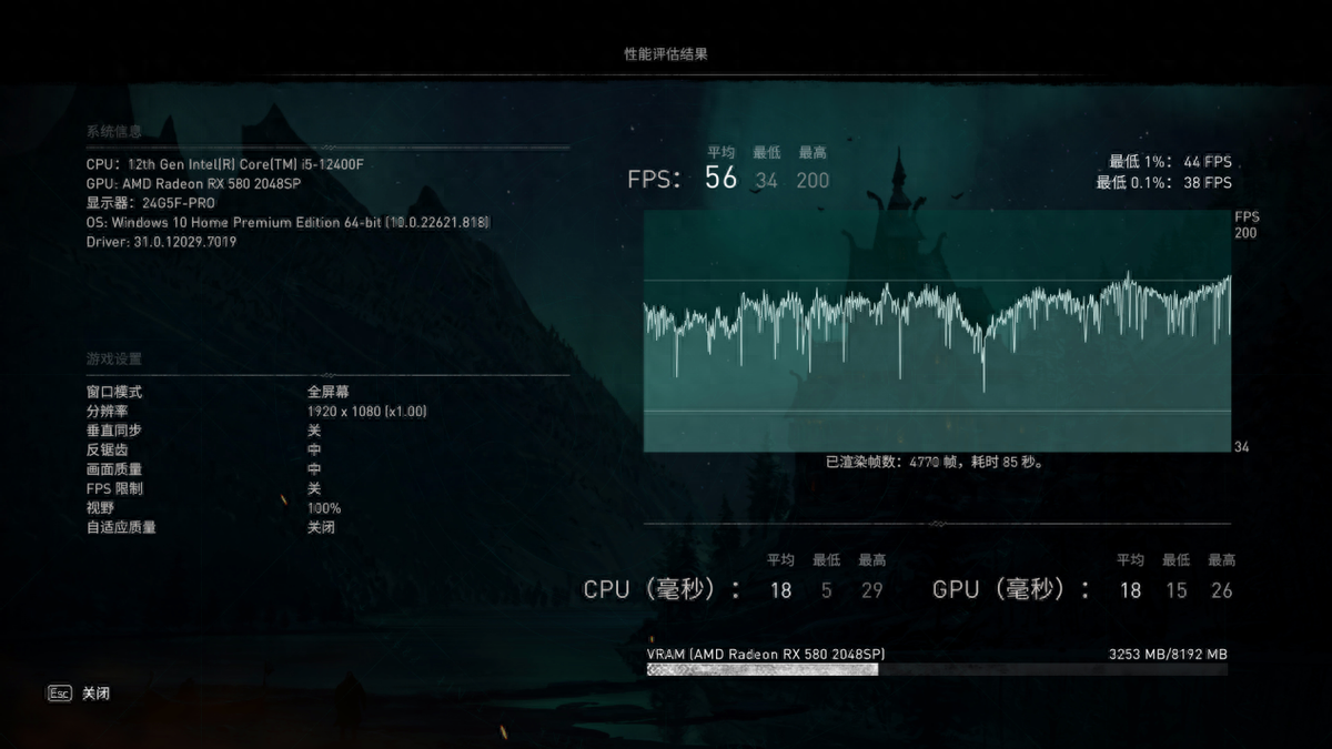 从游戏性能来说,这张卡还是挺能打的,在1080P分辨率CS:GO、绝地求生和彩虹六号这类FPS游戏都能畅玩而且帧数不低,永劫A黑只能60帧中画质,其他3A游戏大多也能中高画质60帧,而像赛博朋克2077、荒野大镖客2这类非常吃显卡的游戏就只能低画质玩了。