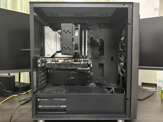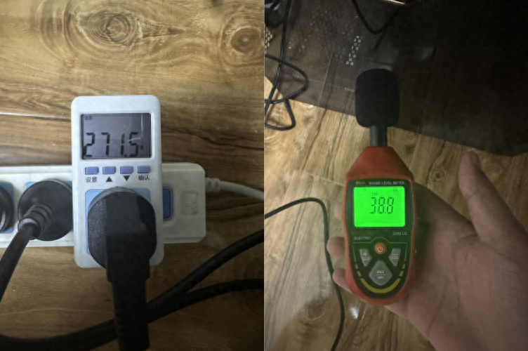 FPU+FurMark双烤,整机满载功耗271W左右,12400F+588电源功率450W就足够了,双烤机箱噪音38分贝,基本听不到噪音。