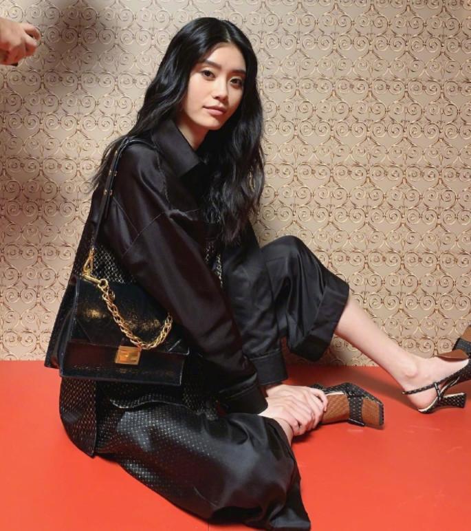 穿上黑色的套装后,显得奚梦瑶也是一个百变的“衣架子”了,丝绸的材质让奚梦瑶穿上这身服装服装后,投射出来的是一种舒适感,让人忍不出想要触手抚摸般的冲动,肩上背着黑色的包包,包包上的金色的链子也是给这身服装点缀了不少颜色上的撞击,一袭波波卷的秀发飘散在肩头很是随性啦。
