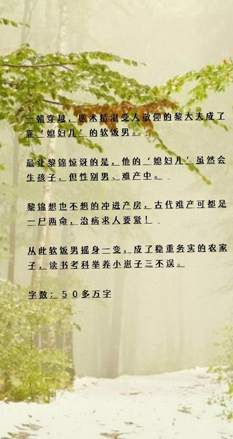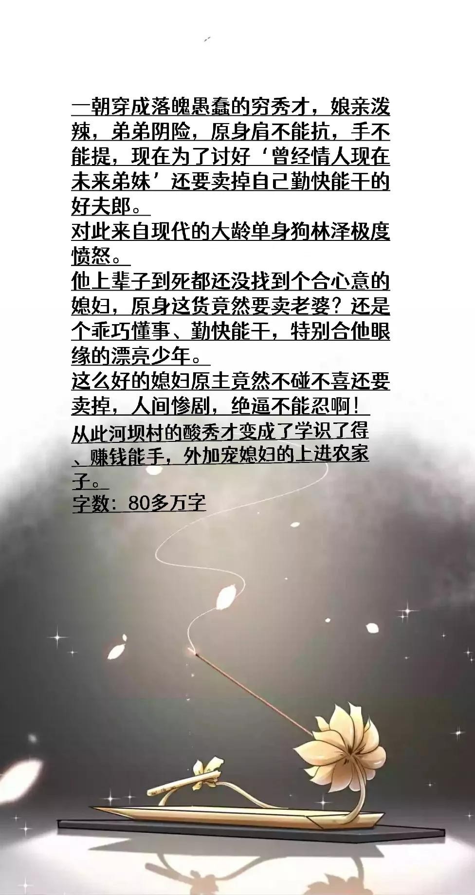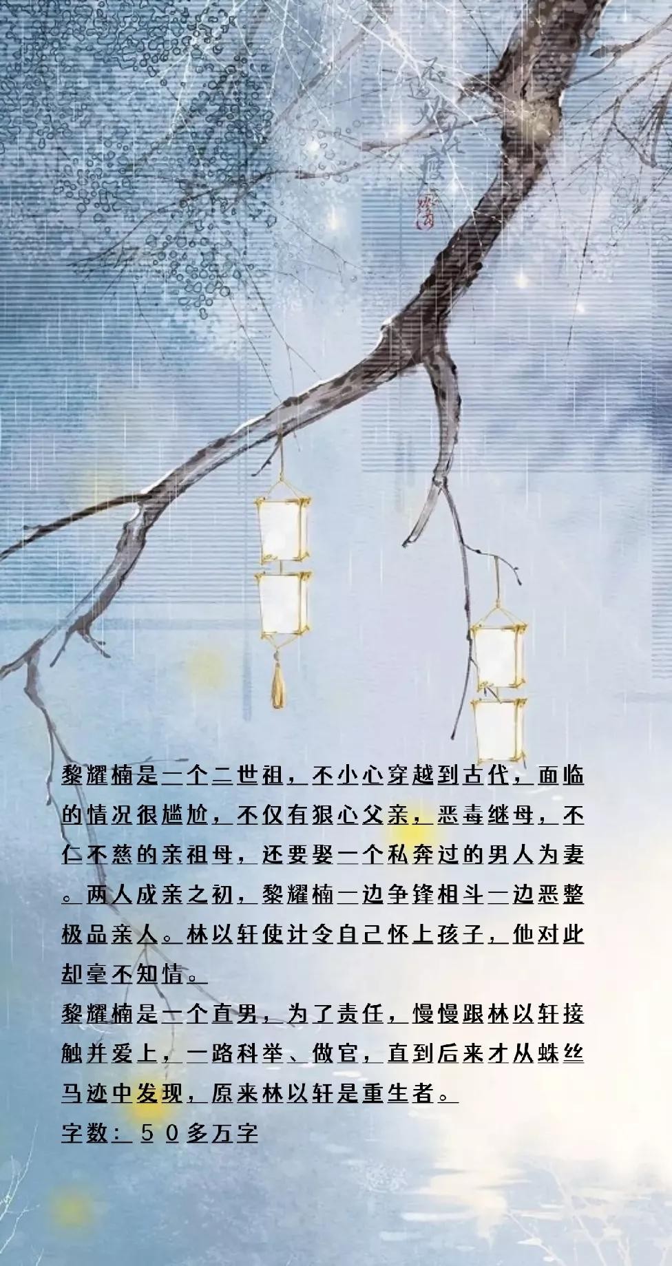 评语:看纯爱科举文时第一本看完的小说,内容么是相当不错的,尤其是对科举过程的描写,相当的古朴,当然了开头的设定多少有点儿考验人心,开局就送娃……主角还真有点儿心大!大约是真爱吧~