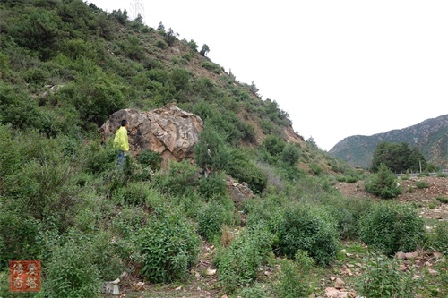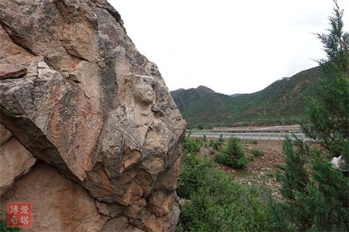 大日如来数十米外的一块大石上,刻有大段的藏文铭记,内容为赞颂的文字。