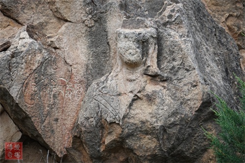 在大约两公里外的一处山崖下,保存下来另外一尊大日如来残像,仅存胸部及半个头,有时候残缺显得更美。