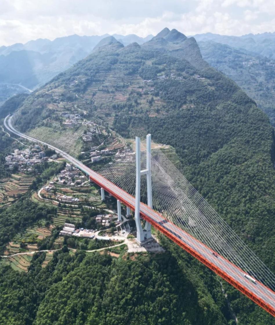 北盘江大桥横跨在北盘江上,是世界上最高的桥之一,而鸭池河特大桥则是世界上跨度最大的梁斜拉桥之一。