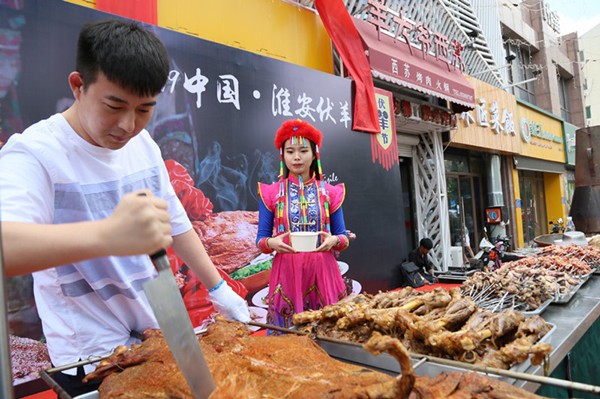 扬子晚报网8月6日讯(通讯员 顾轩 记者 朱鼎兆)烈日炎炎,伏羊飘香。8月3日,2019淮安首届伏羊节在羊大爷旗下西苏烤肉盛大开幕!