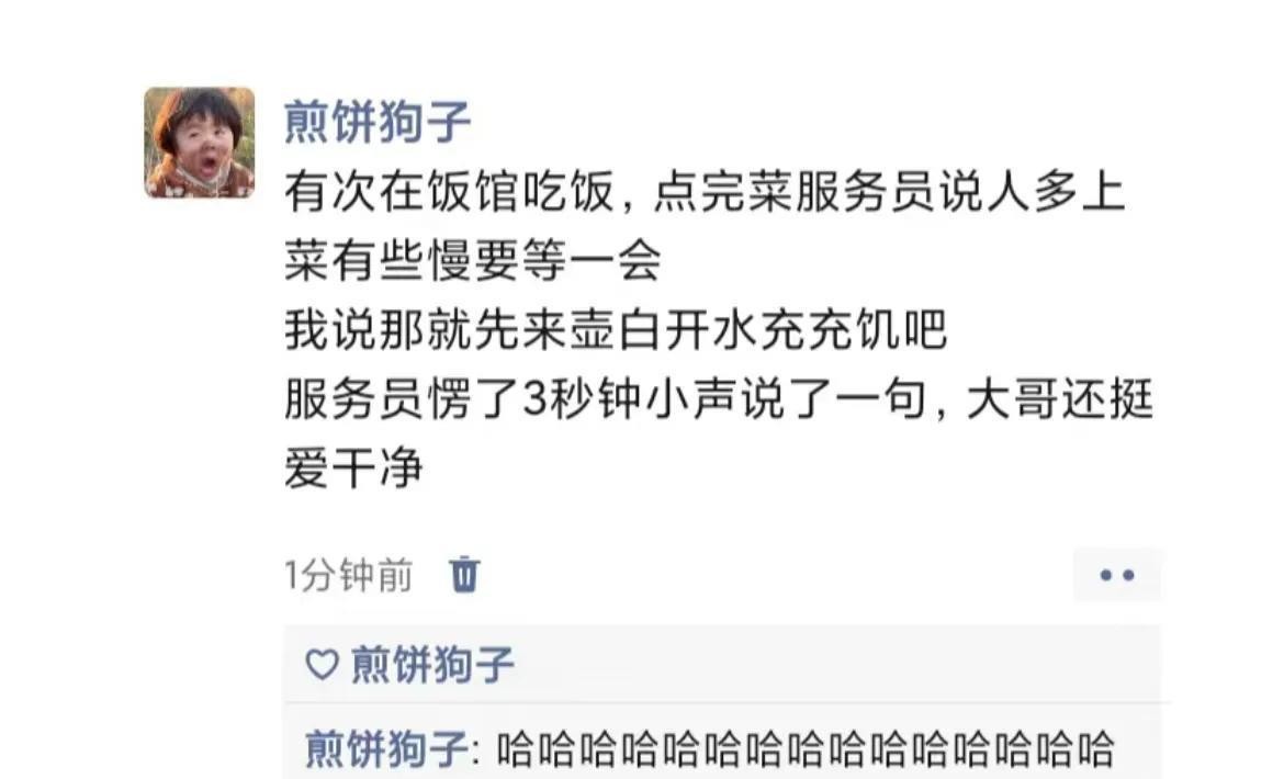 还有一个看起来像大学生的人,在关键时刻差点冒尖出来。还有一个小窍门,告诉大家服务员也是会夸人的。这真是让人感动!还有一个可爱的小孩子的世界,