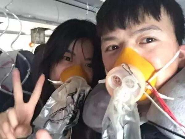 事发当时,周建强刚吃完早餐,突然“砰”地一声巨响,飞机开始急速下降,氧气面罩掉了下来,他的第一反应是抱住了女友,并不断安慰女友,“别怕,有我在”。