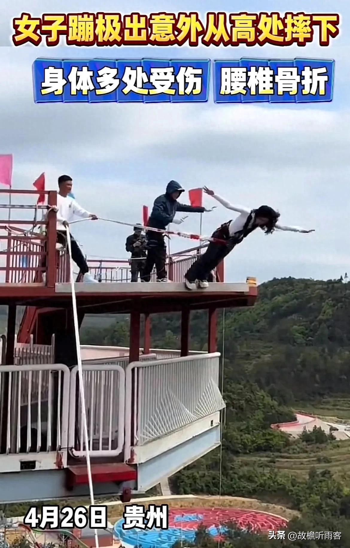 女子蹦极意外摔下多处受伤 腰椎骨折!