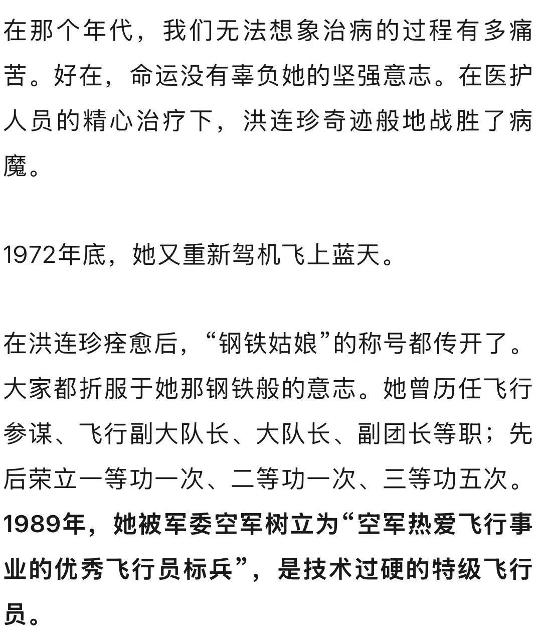 1972年,在洪连珍飞行生涯的第七个年头,24岁的她,确诊患上了淋巴癌。医生告诉她:“最多只能活半年。”