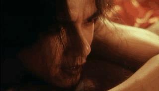 最让人惊艳的片段就是她手执画笔,轻启朱唇,为六王爷(单立文饰演)刺青。