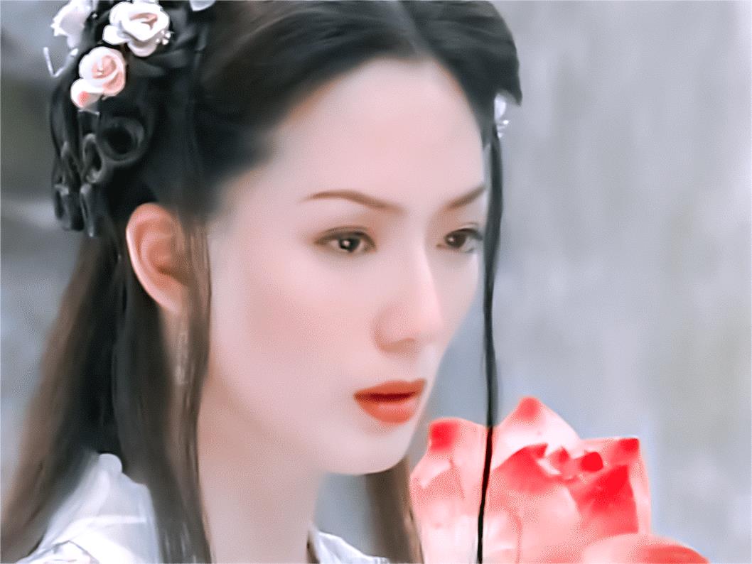 出演武侠电影《新碧血剑》中的温青青,即使被造型师在头上扣了两个“白色塑料壳”,也完全影响不到她的美。