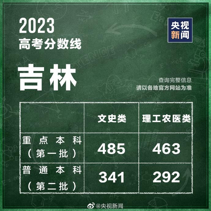 查询链接:2023 年吉林省普通高考本专科各批次录取最低控制分数线