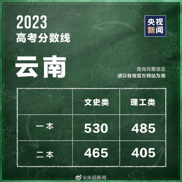 查询链接:云南省 2023 年普通高校招生录取最低控制分数线