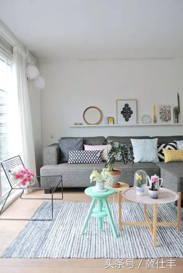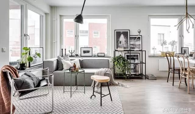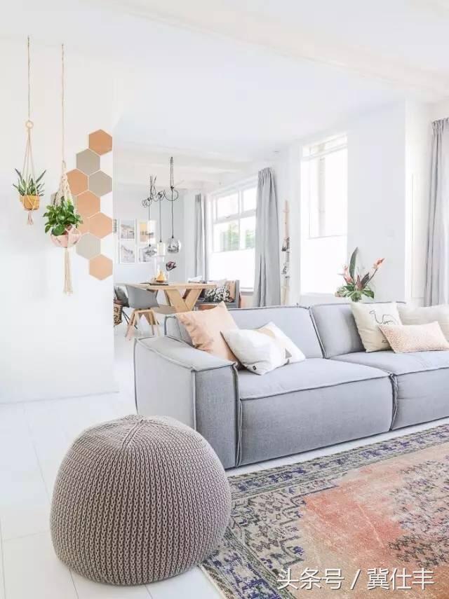 重要的话说三遍,北欧风格的沙发下面,都有地毯,地毯什么颜色的呢?灰色的沙发一般搭配灰色地毯为主,或更深点,或更浅点,尽量不要同色。