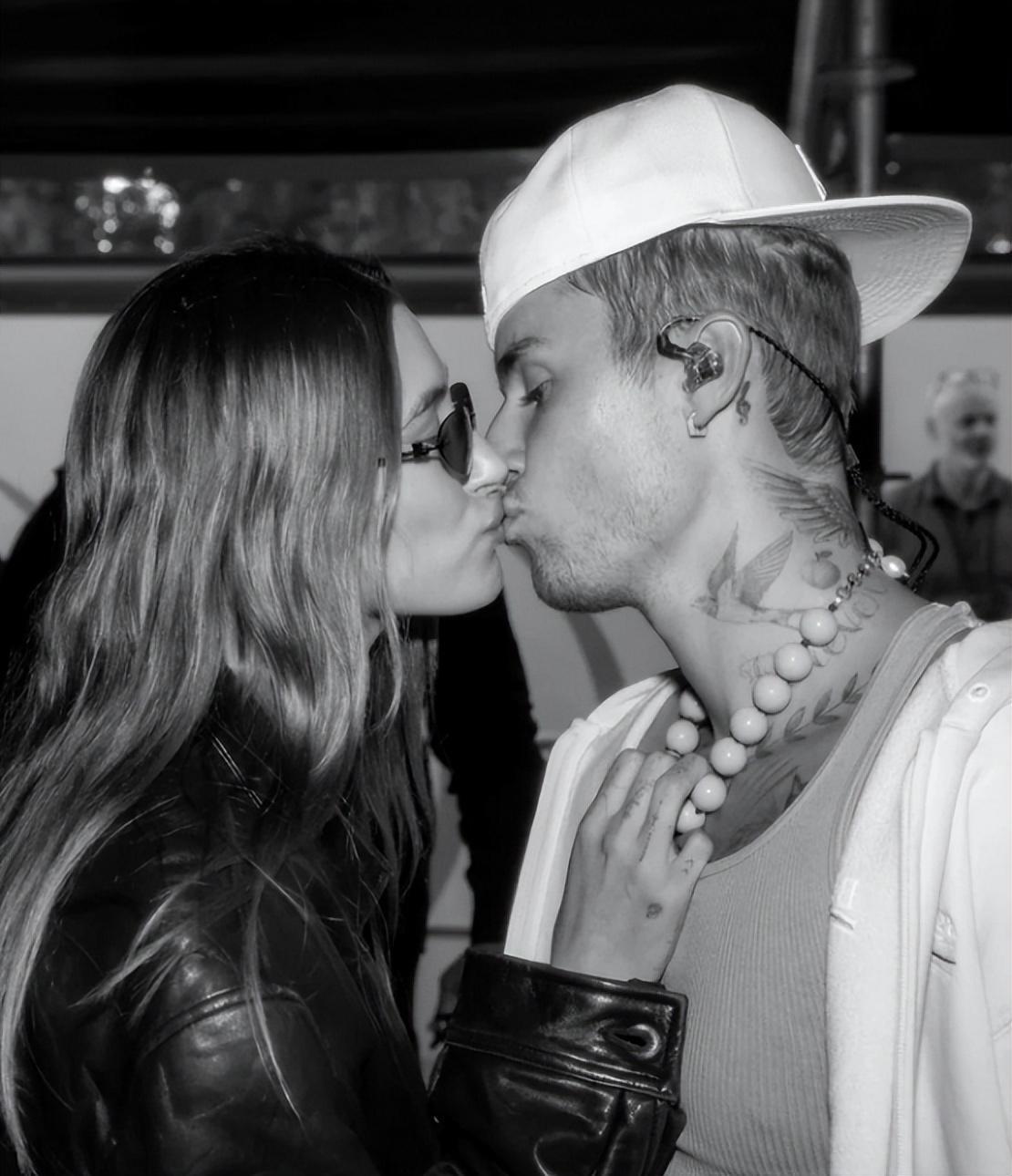 贾斯汀比伯晒与爱妻合照,脖间纹身太抢镜,和妻子海莉亲亲秀恩爱