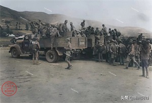 正在缅甸公路上行进的中国远征军士兵,面对镜头,这两个年轻的小伙子会心一笑,可以看得出来他们有着一颗纯洁的内心。