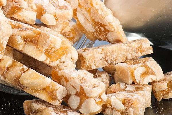 花生酥糖是一道非常适合小孩和老人的小吃,它是用纯手工的方法熬成糖稀,再加入独特自制的花生粉,外表金灿灿的,像一条条黄金,入口香浓酥甜,花生的味道也恰到好处。