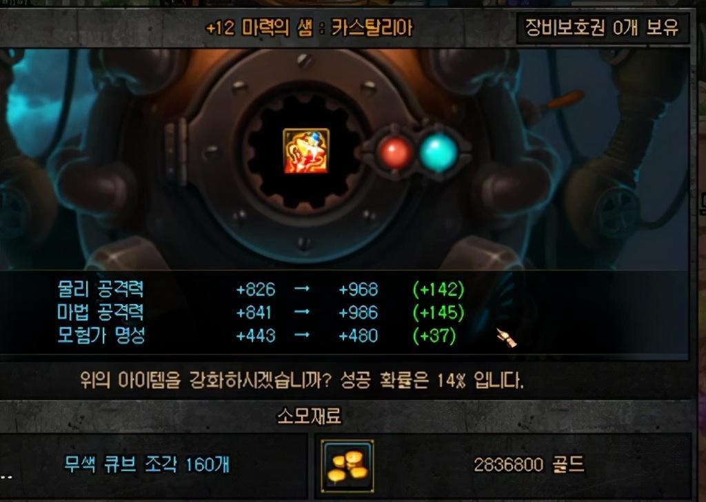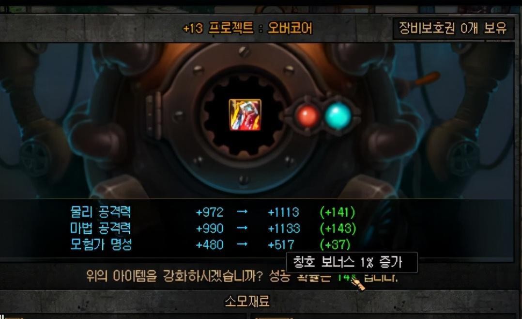 比如强化13→14的基础概率是13%,通过强化秘药,可以提升到14%